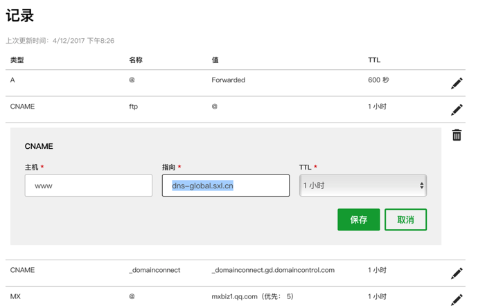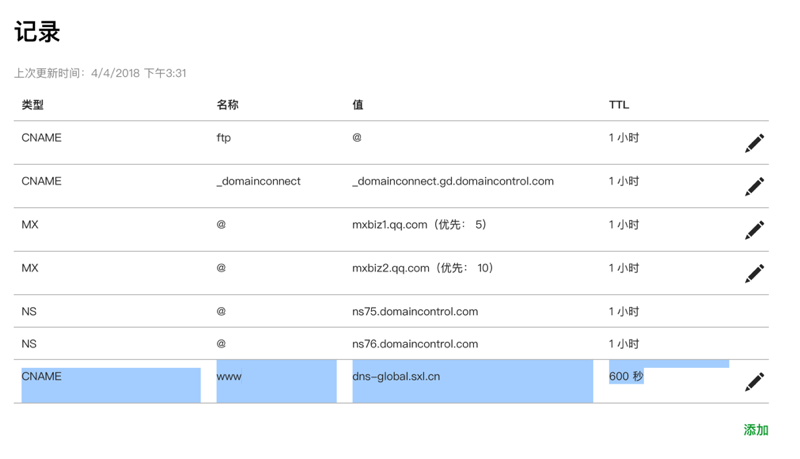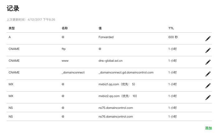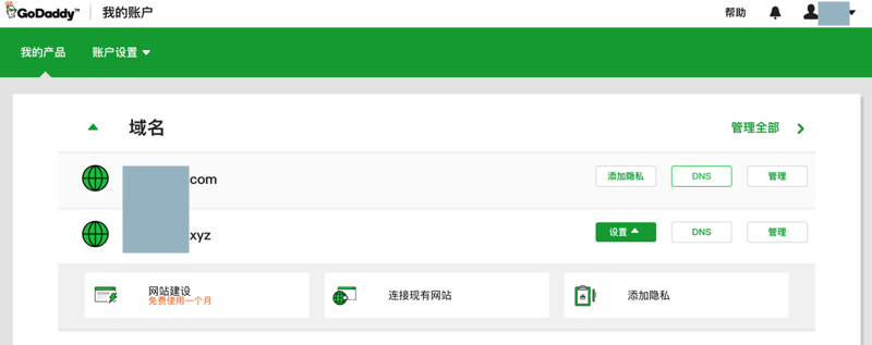 此处为了使主页上线的话,就是去对应的域名服务商,Godaddy那里,设置DNS即可: