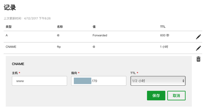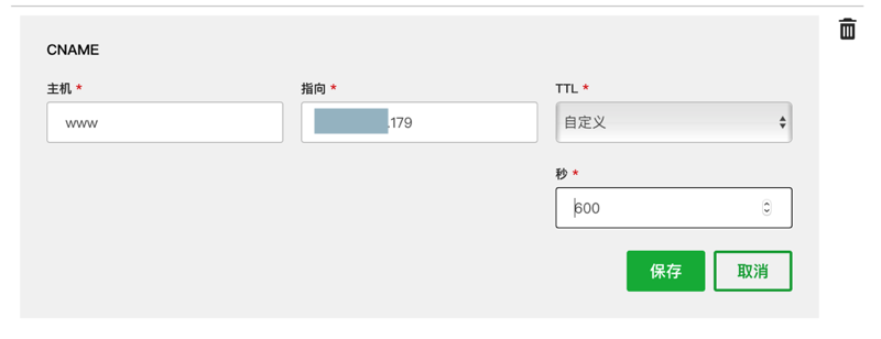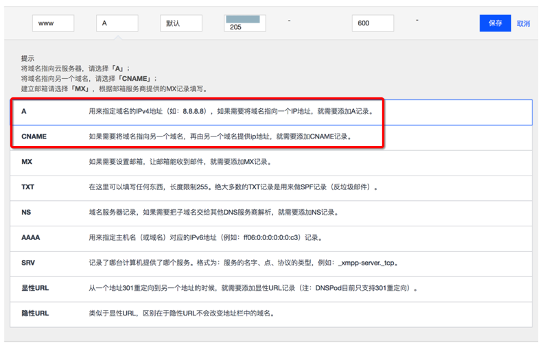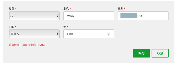 与 A 记录不同,CNAME 无法使用 IP 地址。