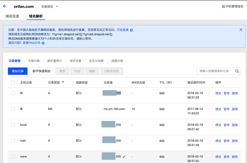 过个(之前设置的生效时间是1小时)1小时左右之后,再去看看域名解析是否切换过来了
