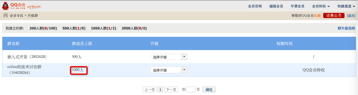 可以了。买了QQ会员后,可以开通升级到1000人群了。