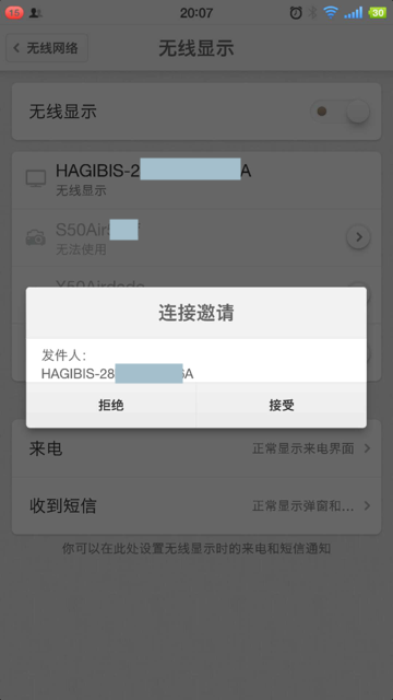 然后Android手机锤子M1L,去无线显示中连接出现的这个HAGIBIS-28F3669DA96A