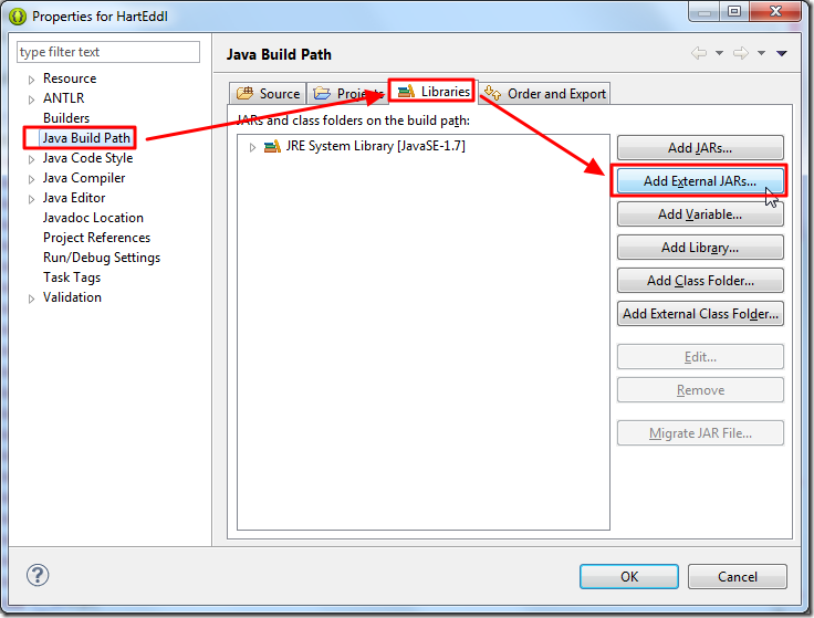 右击antlr项目->Properties->Java Build Path -> Libraries -> Add External JARs