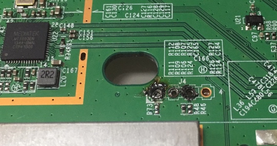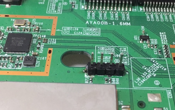 把排线针头焊接到电路板上,然后才能用排线接到USB转串口上到电脑中,电脑中用串口去刷机