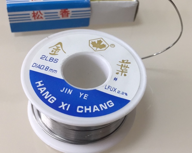 然后去加热电烙铁,然后沾上松香,然后沾上焊锡,就可以了。