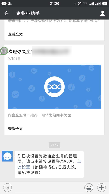 等别人把我微信加为企业号的管理员后