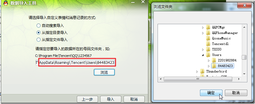因为是找到了对应的,正确的qq目录,才可以正常导入的: