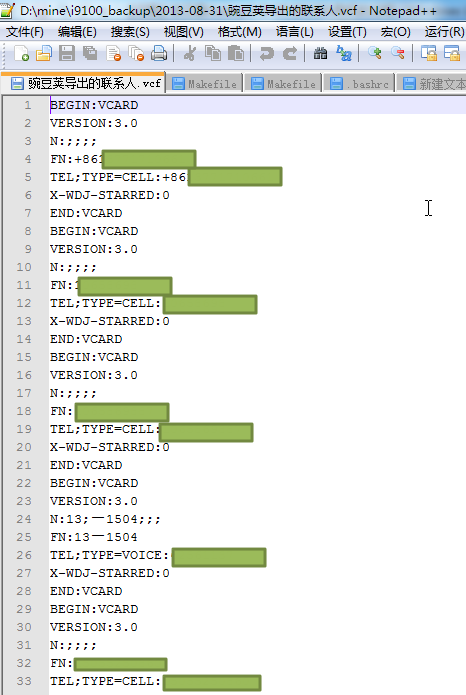 然后去查看导出文件,发现其实.vcf,也是个文本文件,只是符合其自己特定的格式罢了: