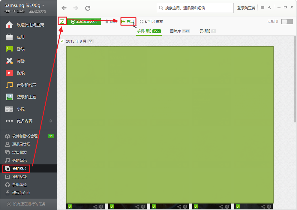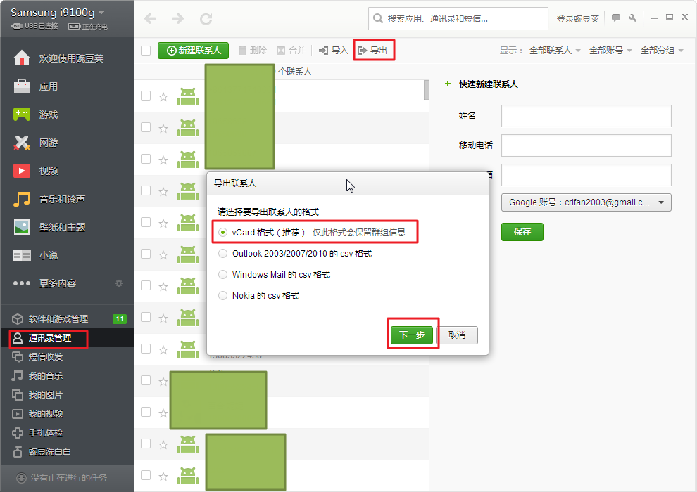 期间,需要用PC版的豌豆荚,给手机三星Galaxy S II(GT-I9100G)备份手机上的各种数据。