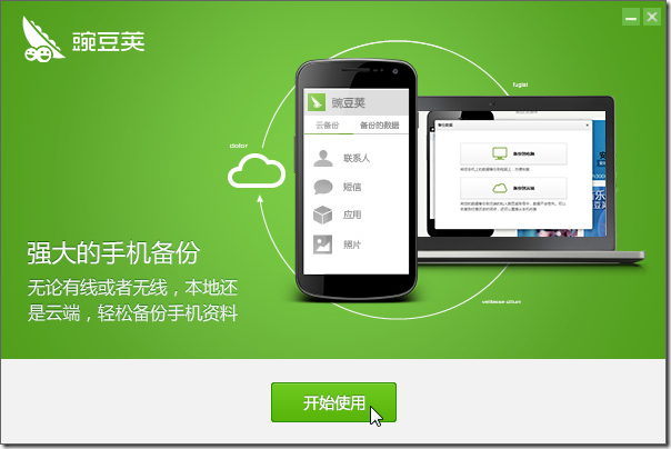 期间,先去用豌豆荚去备份手机里面的数据。