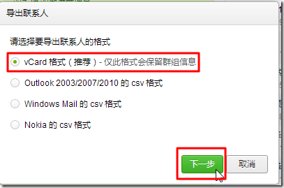 选择能包含分组信息的vCard: