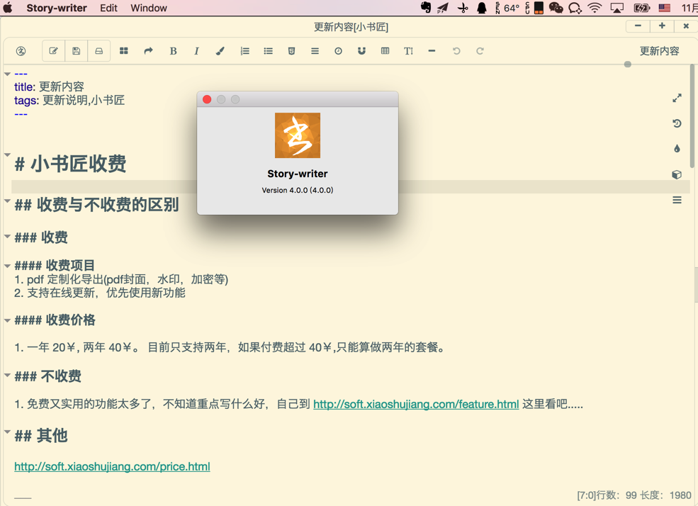 解压后得到app,Story-writer.app,拖到Finder中的应用程序,然后去打开: