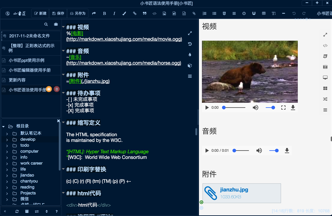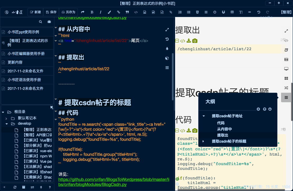 目前看来效果不错,包括预览区的大纲目录,支持点击定位: