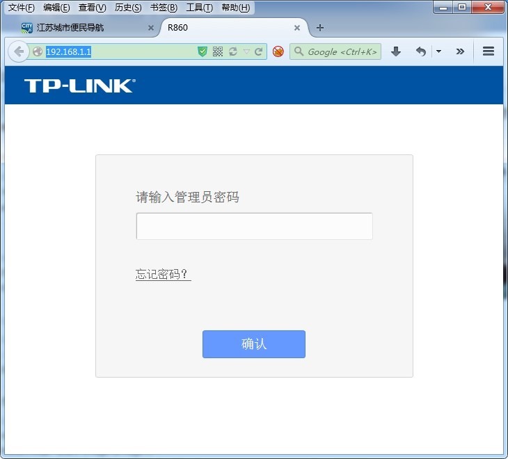 此处,不知道Firefox抽什么风,出现,在已经用(有线或无线)连接了路由器的情况下,去访问正常的,TPLink的管理页面主地址: