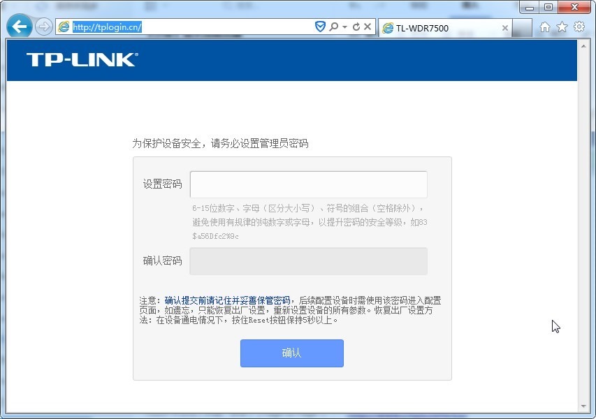 期间,需要通过浏览器去登录新的路由器TL-WDR7500的初始化管理页面。