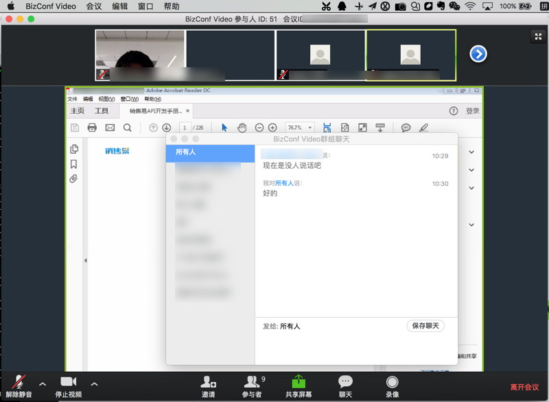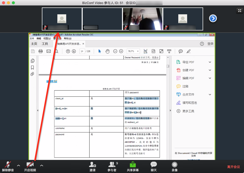 1.logo图标2.禁用视频然后点击 停止视频,就可以不显示自己的视频头像了:3.查看参与者 转载请注明:在路上 » 【记录】会畅BizConf Video视频会议软件使用 Post Views: 1,444