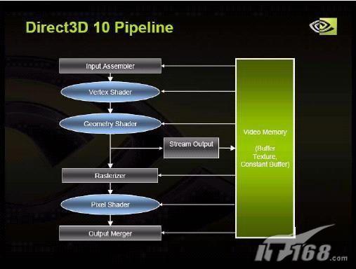 几个月前,DirectX 10的游戏《狂野西部》发布试玩版,为了适应DirectX10的发展,新一代的显卡发布,在这一代显卡的GPU中,VS单元与PS单元逐渐融合,并且出现了一个新的概念“流处理器”,他既可以处理VS的工作,也可以处理PS的工作,但他也不能够被称为“管线”。