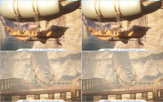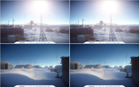 光影效果的对比(一次为GF8800、X1950XTX、GF8800、X1950XTX)