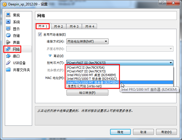 不过如果发现有些系统,比如Windows Vista,中没有PCNet FAST III的驱动,那么取而代之的是Intel PRO/1000系列的网卡。