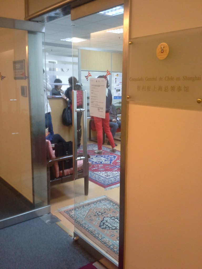 智利领馆里很多地毯,我在里面一直思考这个地毯值多少钱,大家站的地方就是交材料的,先把材料给他们,然后你们就坐在外面等吧,不过智利个人只能办商务,旅游的话要跟旅行社的