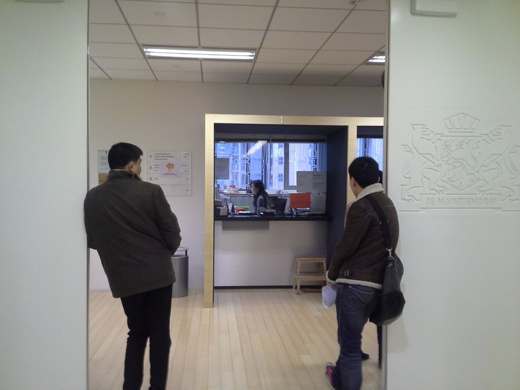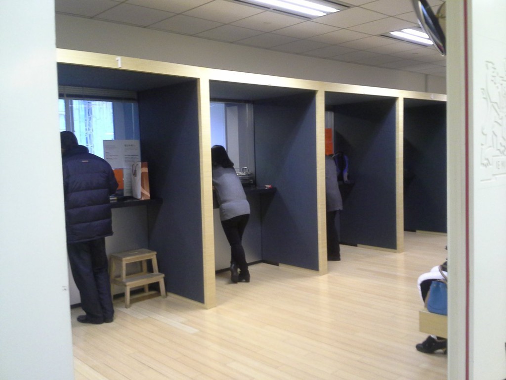 从门口往右看,一共有4个窗口受理材料,看都没的坐,太不人性化了。交完材料就回家,不可刷卡的,最好自己准备零钱,领馆不一定有钱找。