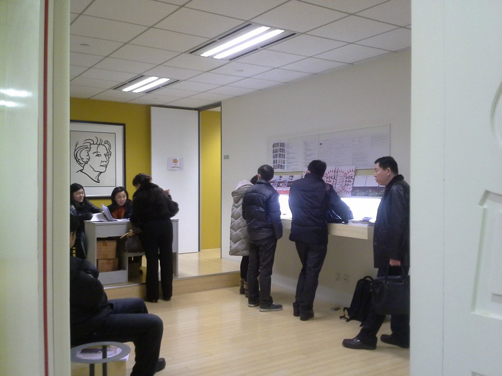 从门口往左看,画下面有一阿姨,可以办理快递的,可以说这个阿姨的态度是领馆里最好的一个,另外一个台子是给你整理材料的