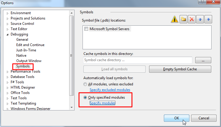 Visual Studio Debugger Slow To Start Up Due To Symbol Loads