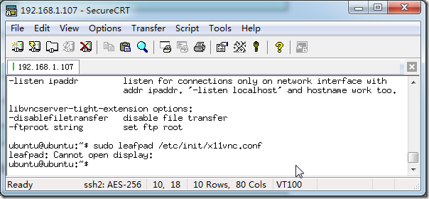 ubuntu@ubuntu:~$ sudo leafpad /etc/init/x11vnc.conf