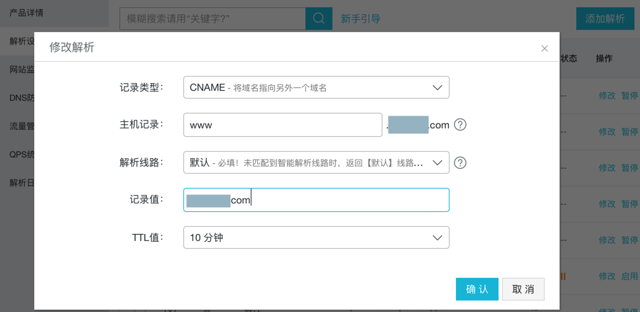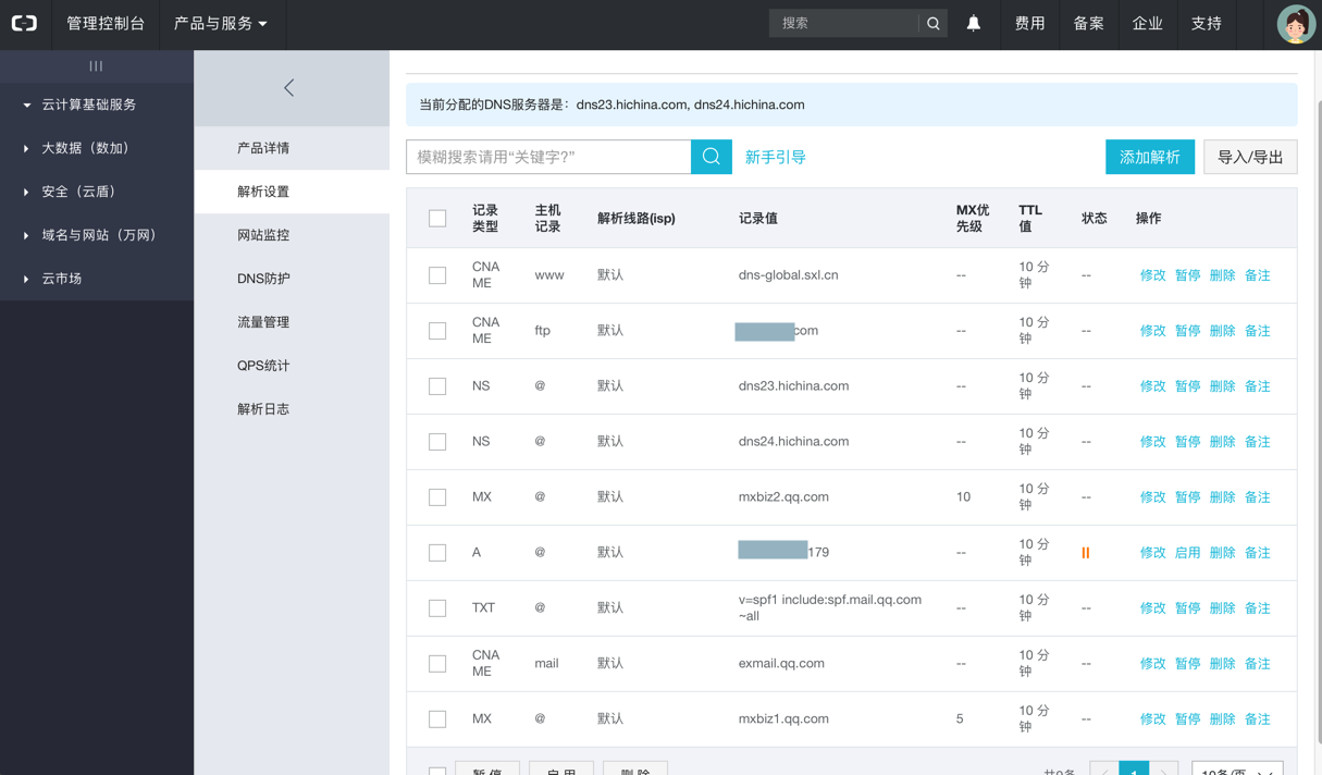 通过阿里云DNS管理后台确定DNS已经解析