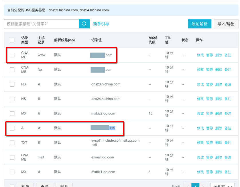 现在域名管理都在阿里云了。去阿里云的域名管理中更新DNS配置。