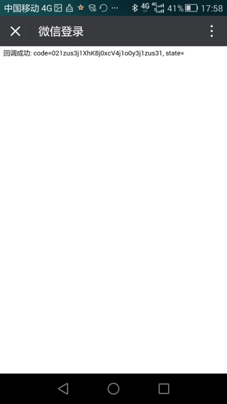 点击 确认登陆后,进入回调页面,显示出我的程序打印出来的内容: