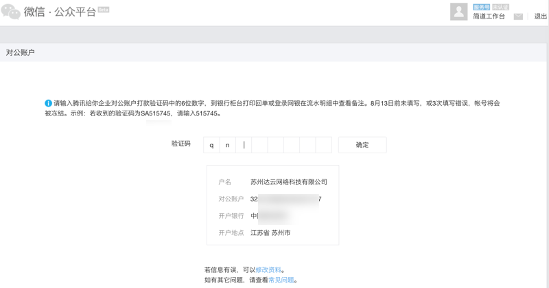 [已解决]微信公众号:该公众号还未完成对公账户打款验证,暂时无法使用公众平台群发功能和高级功能