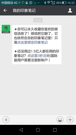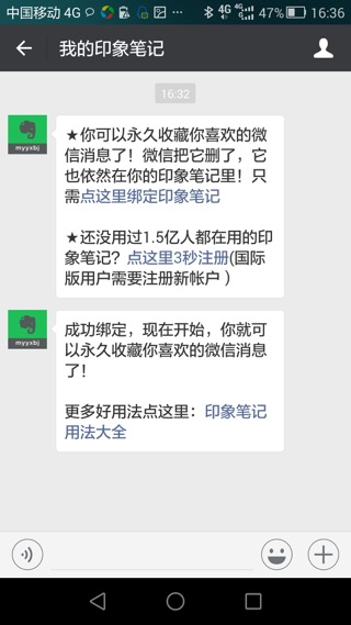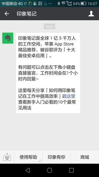 还可以直接和“我的印象笔记”对话:所有的消息都会保存到印象笔记哦。