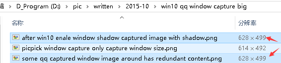 但是实际上QQ截图检测出来的窗口的大小,还是按照加了阴影之后的尺寸,去截图的。
