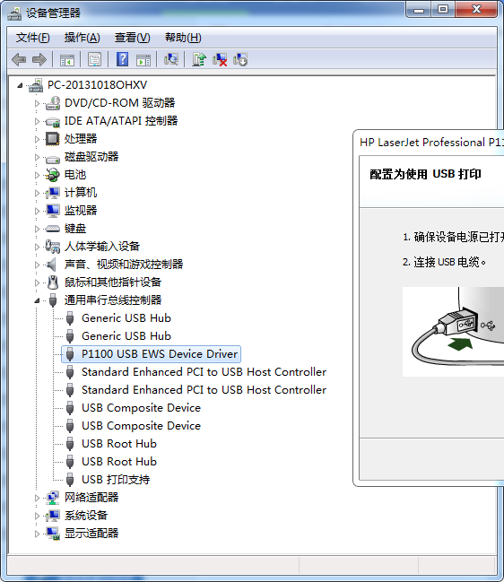 选择那个P1600dn或者是P1560,然后选择 配置为USB打印,即可正确安装USB驱动,然后打印机就可以使用了。