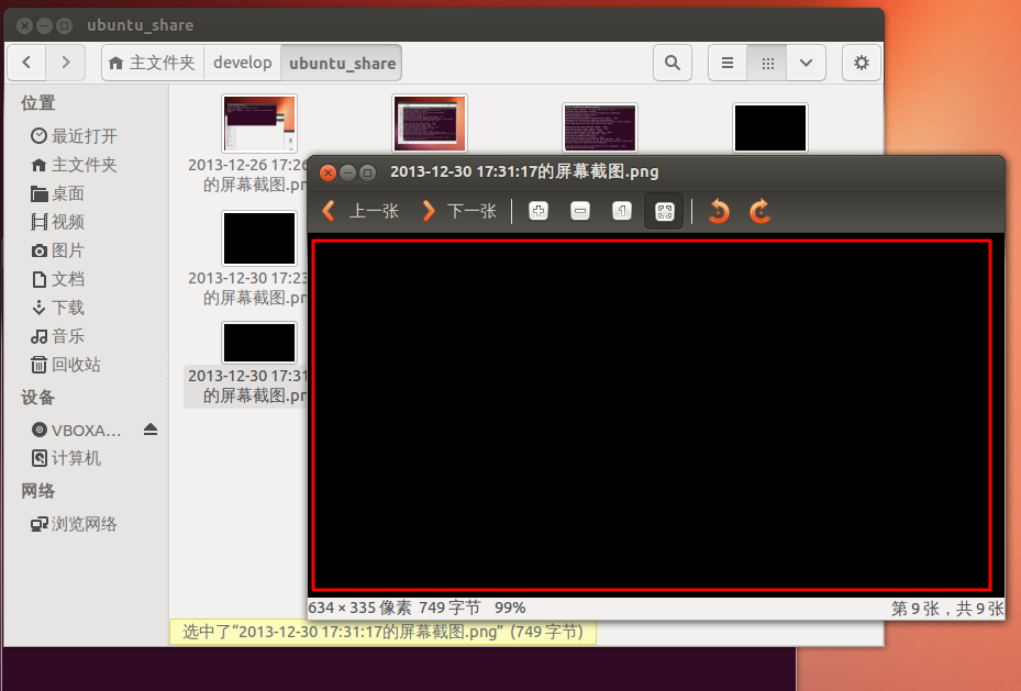 VirtualBox中的Ubuntu,按PrintScreen键,截图,但是保存后的PNG图片是黑屏: