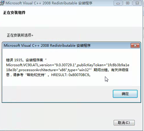 error 1935 install microsoft vc90 hresult 0x80070bc9