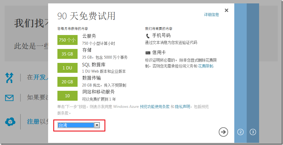 注册windows Azure时,遇到这个界面: