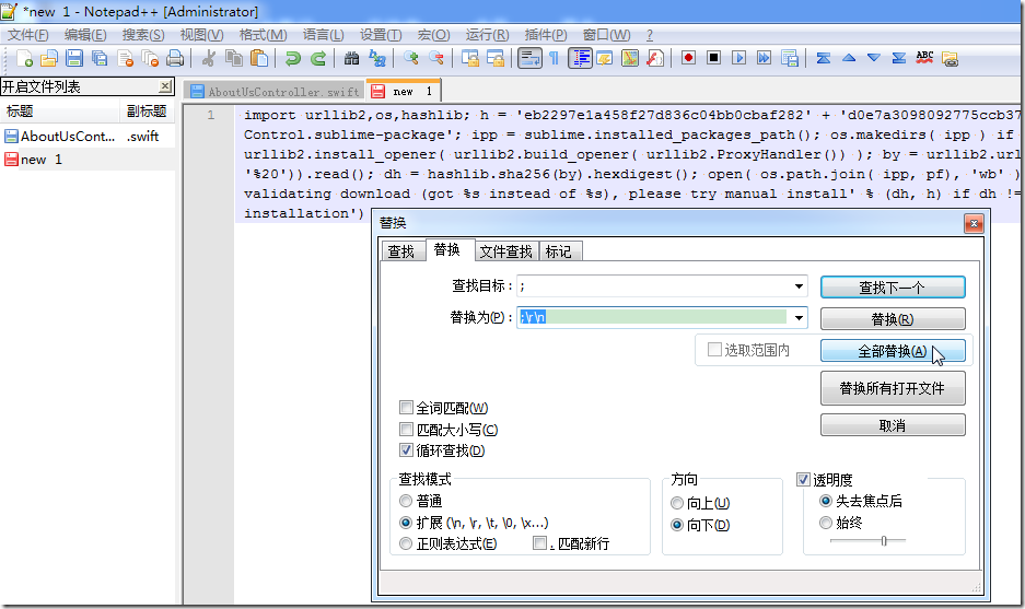 3.而试了试粘贴到Sublime,然后去替换,发现不好用,所以放弃Sublime处理这段代码。