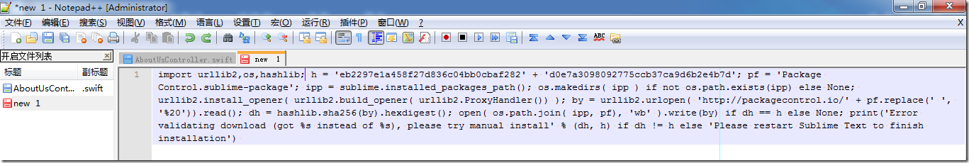 在Sublime的console中输入后回车,即可安装成功Package control。