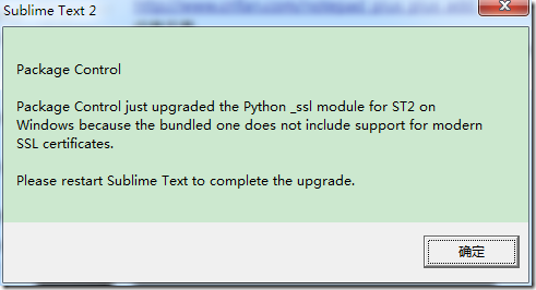 Package ControlPackage Control just upgraded the Python _ssl module for ST2 on Windows because the bundled one does not include support for modern SSL certificates.