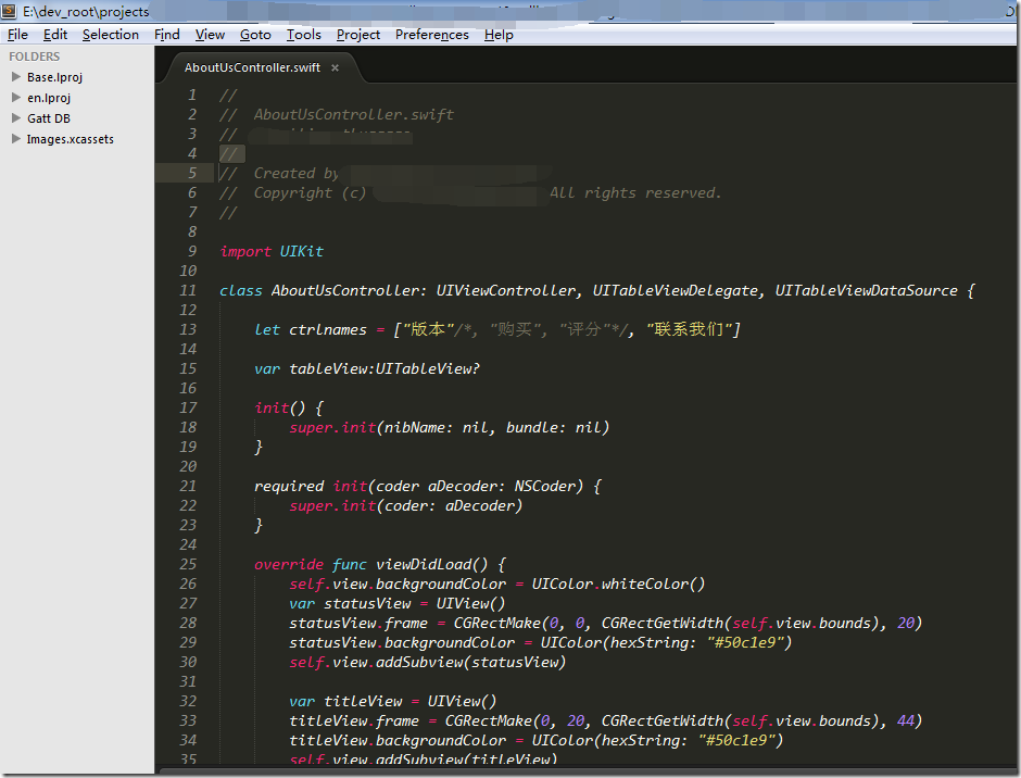 再去打开别的xxx.swift文件后,即可自动识别为swift的语法,并高亮显示了: