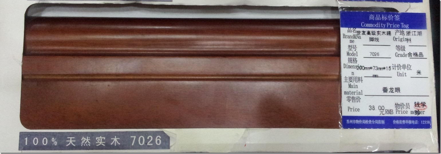 踢脚线 7026,原价38,给我25,算便宜的了 –> 另外有款标价25的,最便宜可以15拿到,但是没这个38的好;