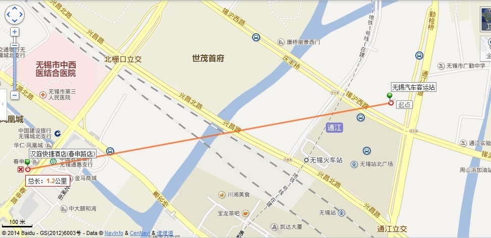 汉庭酒店(无锡春申路店) 和 无锡汽车客运站 之间的距离