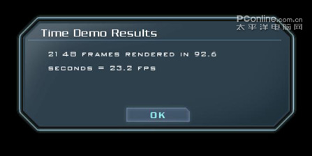 在以第一人称射击游戏为主的OpenGL游戏DOOM3测试当中,把画质等级设置为高,分辨率为1024X768像素,运行游戏自带的DEMO1测试所得的平均帧速只有23.2FPS,游戏难以顺畅地运行。
