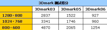 3DMark2006 | 总分 | 1047 | 910 | 609 | 559 |
