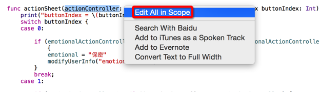 选中变量,鼠标往单词的右边处移动时,可以出现下列按钮,点击后,选中Edit In All Scope,即可更改变量名称,基本实现重命名的效果了。