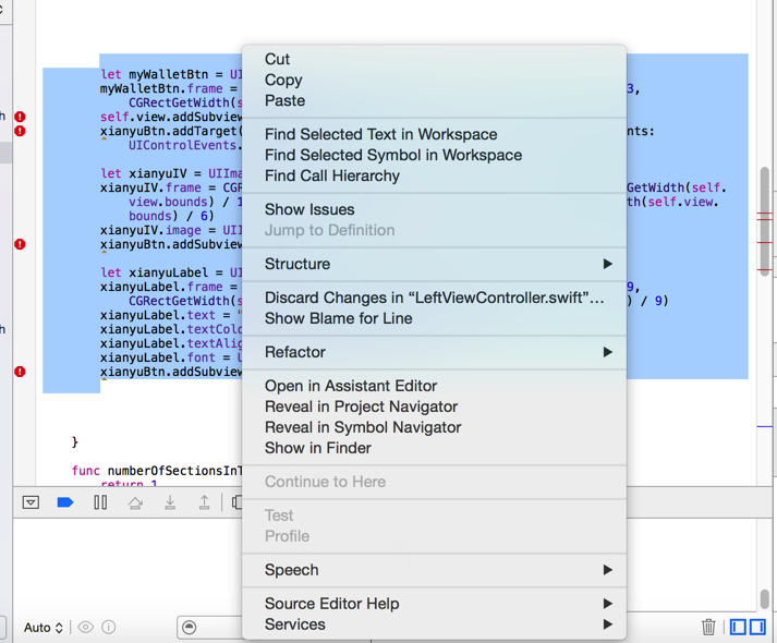 2.xcode中的菜单,也找了半天,都没有看到有什么 comments之类的功能。