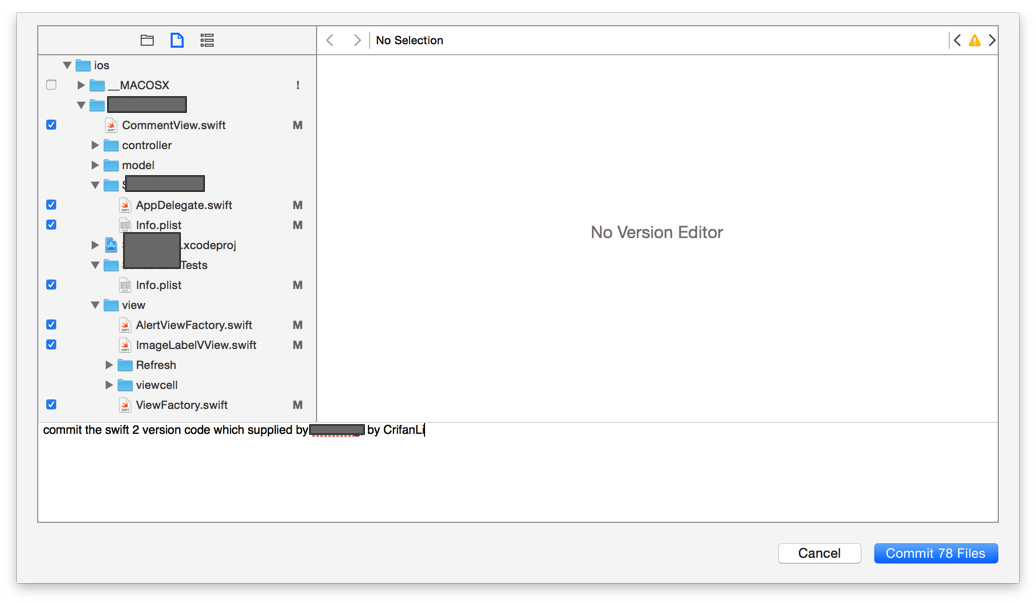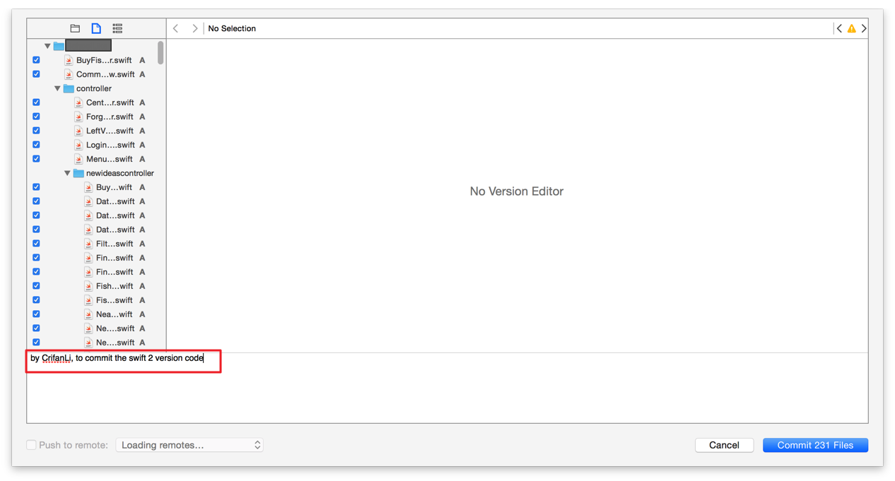 licrifandeMacBook-Pro:ios crifan$ svn commit -m "zzz edit network related code" Sending xxxxxx/xxxxxx.xcodeproj/project.pbxproj Adding xxxxxx/xxxxxx.xcodeproj/project.xcworkspace/xcshareddata Adding xxxxxx/xxxxxx.xcodeproj/project.xcworkspace/xcshareddata/xxxxxx.xcscmblueprint Adding xxxxxx/xxxxxx.xcodeproj/project.xcworkspace/xcuserdata/crifan.xcuserdatad Adding (bin) xxxxxx/xxxxxx.xcodeproj/project.xcworkspace/xcuserdata/crifan.xcuserdatad/UserInterfaceState.xcuserstate Sending xxxxxx/xxxxxx.xcodeproj/project.xcworkspace/xcuserdata/zzz.xcuserdatad/UserInterfaceState.xcuserstate Adding xxxxxx/xxxxxx.xcodeproj/xcuserdata/crifan.xcuserdatad Adding xxxxxx/xxxxxx.xcodeproj/xcuserdata/crifan.xcuserdatad/xcschemes Adding xxxxxx/xxxxxx.xcodeproj/xcuserdata/crifan.xcuserdatad/xcschemes/xxxxxx.xcscheme Adding xxxxxx/xxxxxx.xcodeproj/xcuserdata/crifan.xcuserdatad/xcschemes/xcschememanagement.plist Sending xxxxxx/xxxxxx.xcodeproj/xcuserdata/zzz.xcuserdatad/xcdebugger/Breakpoints_v2.xcbkptlist ... Sending xxxxxx/controller/tabcontroller/newideascontroller/ServiceViewController.swift Deleting xxxxxx/model/network/HTTPRequestSerializer.swift Deleting xxxxxx/model/network/HTTPResponseSerializer.swift Sending xxxxxx/model/network/HTTPSecurity.swift Deleting xxxxxx/model/network/HTTPStatusCode.swift Deleting xxxxxx/model/network/HTTPTask.swift Deleting xxxxxx/model/network/HTTPUpload.swift Adding xxxxxx/model/network/Operation.swift Adding xxxxxx/model/network/Request.swift Adding xxxxxx/model/network/StatusCode.swift Adding xxxxxx/model/network/Upload.swift Transmitting file data ................................ Committed revision 476. licrifandeMacBook-Pro:ios crifan$