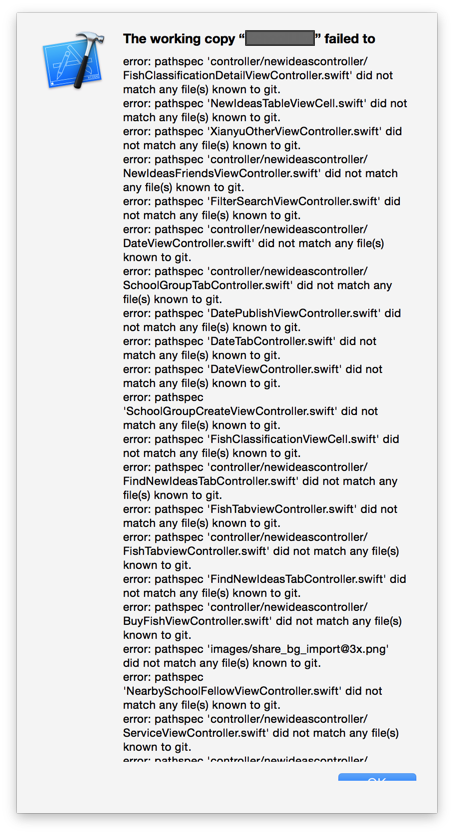 结果Xcode打开后,commit却无法commit了,显示出错了。