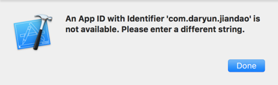 An App ID with Identifier ‘com.daryun.jiandao’ is not available. Please enter a different string